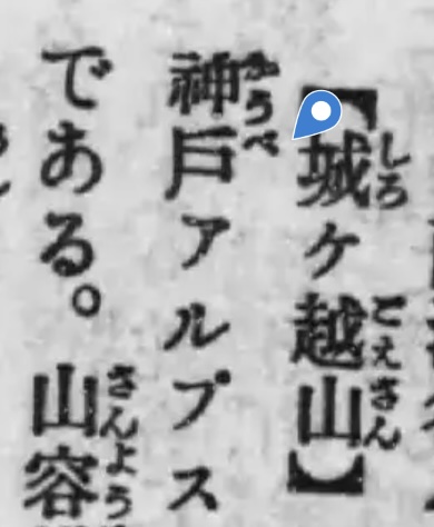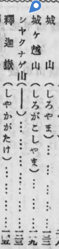 大正13年(1924)『近畿の登山』では、城ヶ越山に明確なルビが確認できる。