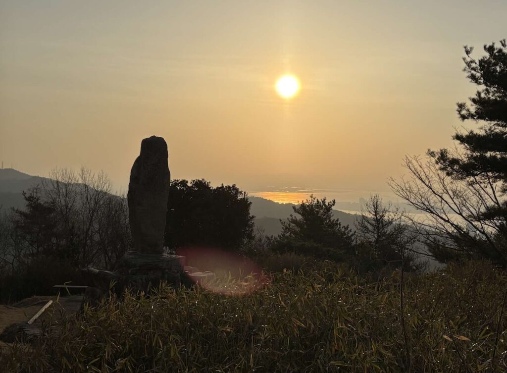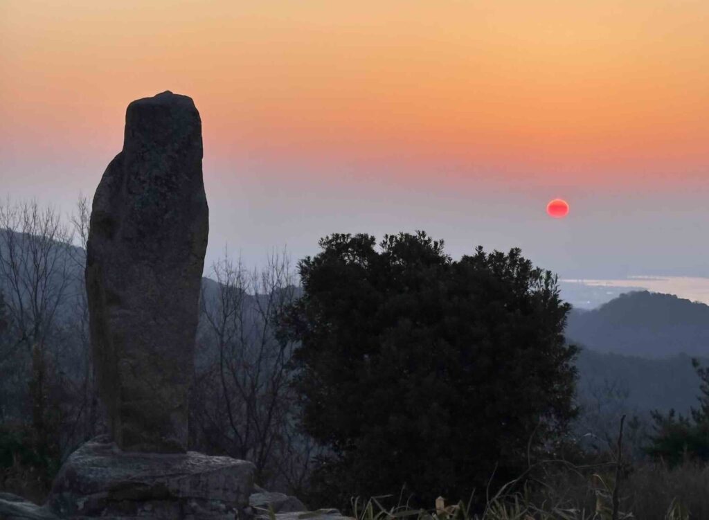 ※毎朝300日以上通い続けて撮影した菊水山山頂の石碑と朝日