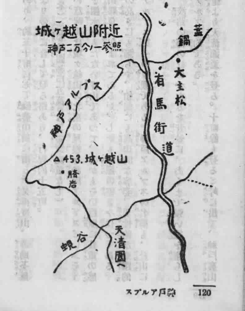 ■ 神戸アルプスを記された地図(城ヶ越山〜鍋蓋山)