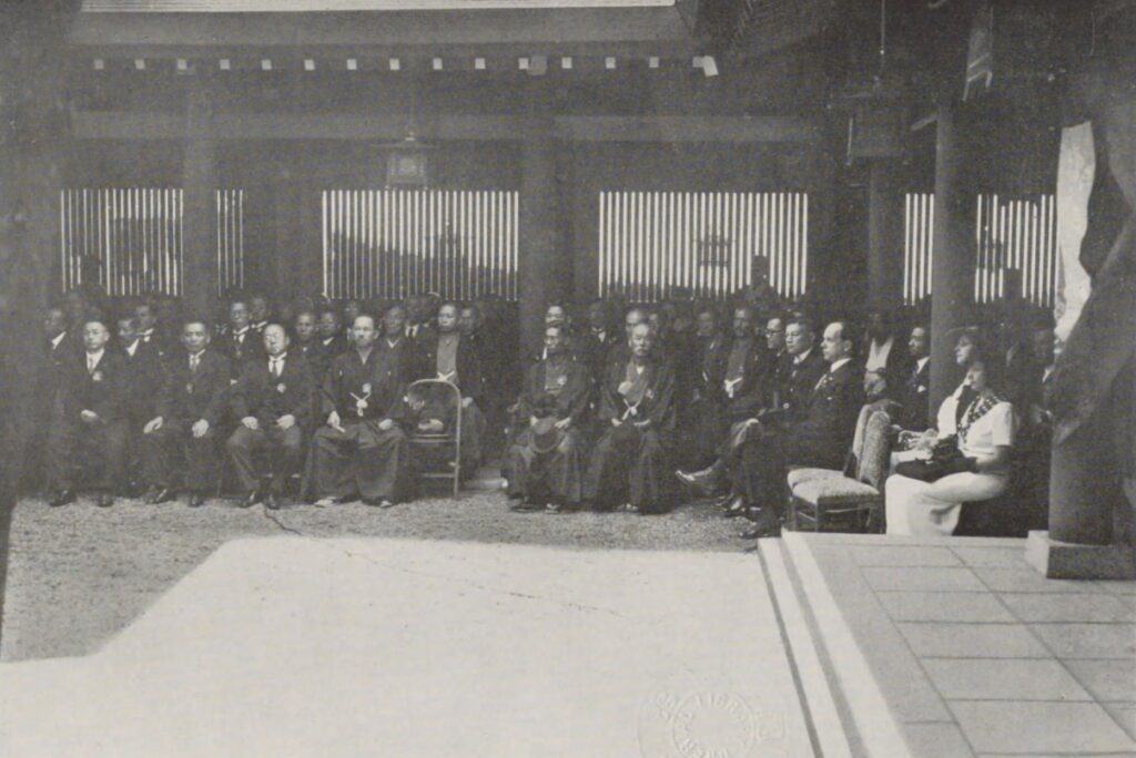 玉串奉奠などの儀式が行われ、多くの人々が参集していたことが確認できる。