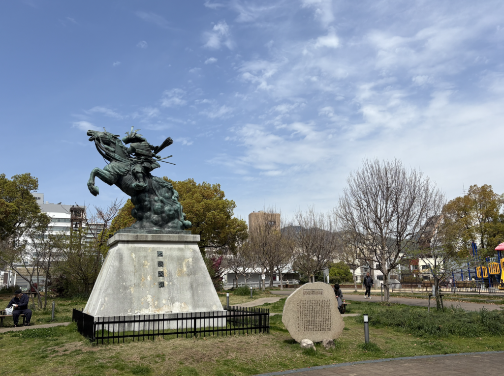 湊川公園にある大楠公像。